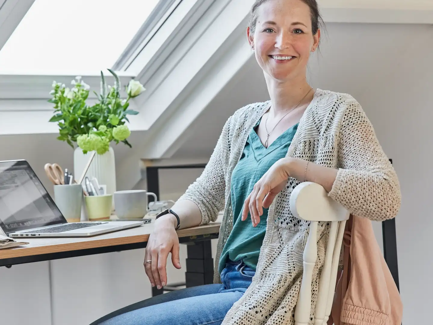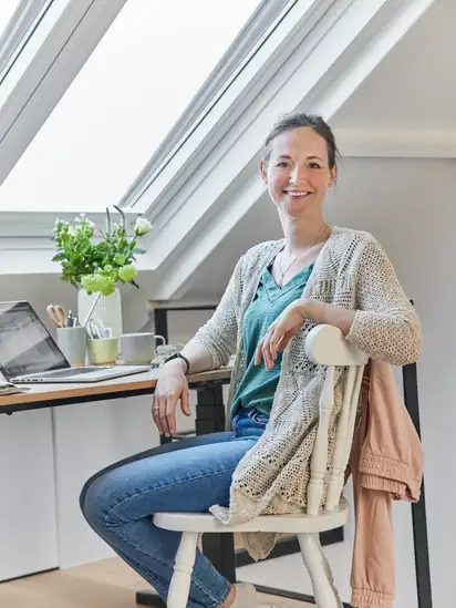 Nesen pārveidotā bēniņu telpa ar VELUX jumta logiem radīja klusu mājas biroju ar skatu, kas ienes dabu telpā.