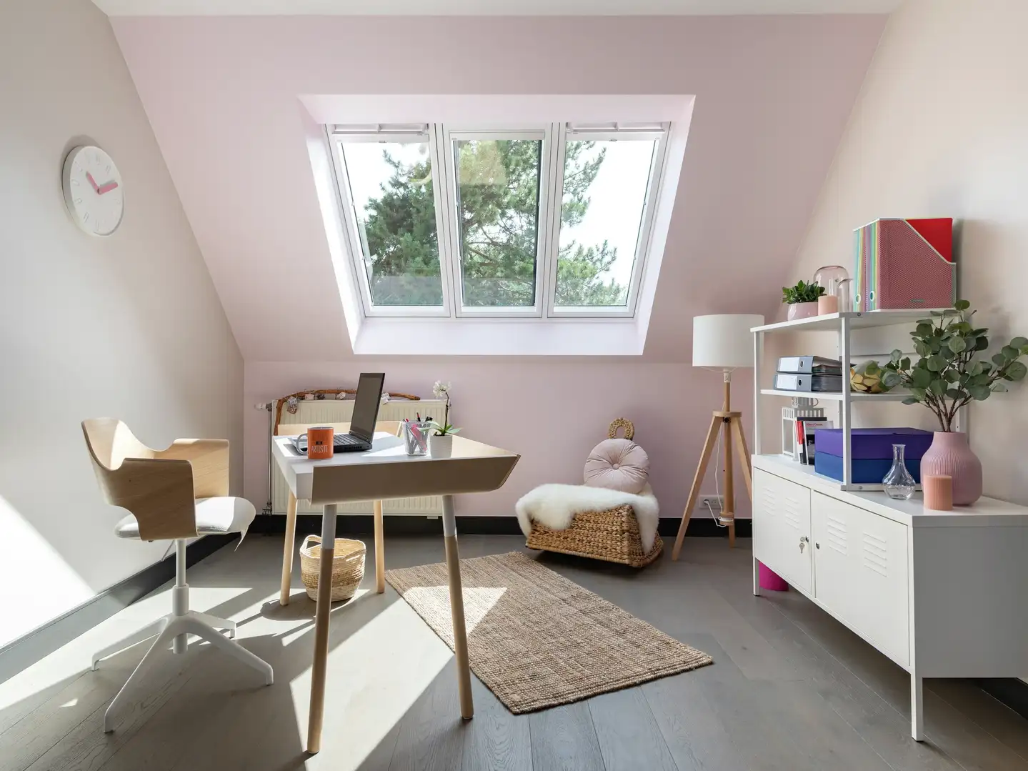 Personalizē savu skandināvu stila biroju ar neuzkrītošu dekoru, piemēram, ierāmētu mākslas darbu, telpaugiem vai ērtām tekstilijām, piemēram, spilveniem vai pārklājiem. Šajā dizainā apvienota funkcionalitāte ar komfortu, kas padara to ideāli piemērotu mierīgai un produktīvai darbvietai.